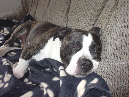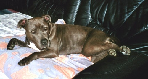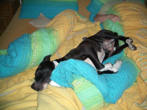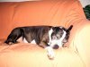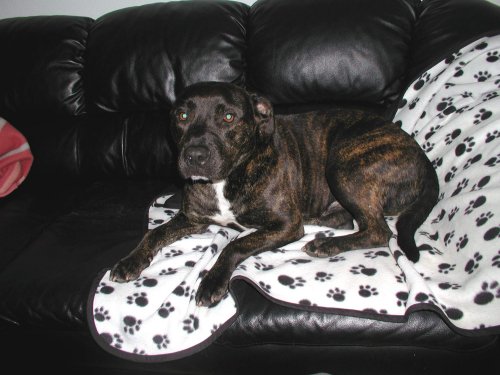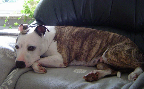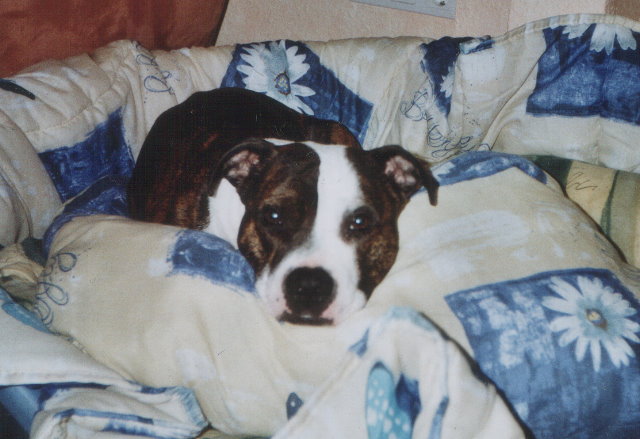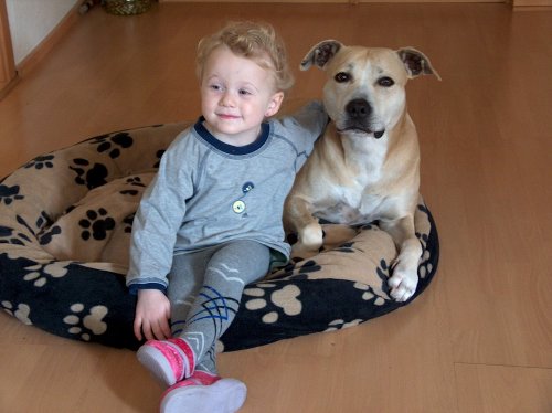 Uns freut es und Jule bestimmt auch, wenn sie es wüsste. Ihr Hundepartner Fero (Manolito) darf seine Spielgefährtin nun behalten und so kann man den Beiden nur ein schönes Leben in der Schweiz wünschen. Auch Jule gehört zu den Hunden, obwohl sie noch so jung ist, welche gesundheitliche Probleme haben. Sie hat Probleme mit den Gelenken und wurde auch schon mehrfach operiert, trotzdem ist sie absolut fidel und sogar etwas zu sportlich, man muss sie dann bremsen. Dieses war auch leider immer wieder der Grund, weshalb Interessenten sie nicht haben wollten. Diese wissen nicht was sie verpasst haben, ihre Hundeeltern wissen, was man an Julchen hat! Ja, manche Hunde haben es in der Vermittlung viel einfacher als andere. Turner hätten wir gleich vervielfältigen können, um alle netten Interessenten mit ihm zu beglücken, aber wir mussten uns ja für eine Familie entscheiden. Ich denke, wir haben die richtige Wahl getroffen. Jahrelange Bulli-Erfahrung der Familie und eine nette Mischlingshündin waren auch ein Grund, aber es passte auch sofort vor Ort. Turner geht nun auch zur Hundeschule und wird doch noch ein bisschen Grundgehorsam lernen, aber vor allem sich zu beherrschen, typisch für manch Bulli bekommen wir doch gerne einen Schreianfall, wenn wir besonders aufgeregt sind und da ist Turner Spezialist. Es kreischt und johlt und man sollte sich dessen nicht schämen, gut, einen roten Kopf darf man schon bekommen. Wenn er dann die erste Aufregung verdaut hat, kann man ja wieder manierlich mit ihm arbeiten. Aber auch das wird sich bei ihm noch legen. Schade, dass manche Staff`s nicht so umworben sind von Interessenten. Unsere Bulldogmaus aus Österreich konnte nun auch ausziehen. Frauchen hat viel Spaß an der gelehrigen Hündin, Schmuseeinheiten mit der Sabberbacke sind mehrfach täglich an der Tagesordnung. Lange Spaziergänge, toben im Garten, Ausflüge zum Badesee, was will man mehr?! In der Hundeschule lernt Frauchen mehr als Lizzy, denn sie hat ja die Begleithundeprüfung schon bestanden, beiden macht es aber halt Spaß und so gehört die Hundeschule auch zum festen Bestandteil. Lizzy passt sogar auf die Couch, obwohl sie ja dort eigentlich nicht rauf sollte, aber wie das Leben halt so spielt und natürlich der Bulldoggen Sturkopf. Auch die erwachsene Tochter und "Oma" und "Opa" sind von ihr begeistert. Nun durfte auch Monchen als ehemalige Bremerin ausziehen. Dort als Welpe gefunden, stand sie jahrelang in der Bremer Stadtamtunterbringung ohne sozialen Kontakt zur Umwelt oder Artgenossen. Nun hat sie nach einer Zeit bei uns ihr endgültiges Zuhause gefunden. Wir freuen uns sehr für diese sensible Hündin, vor allem, dass die kleine Maus nun glücklich als Zweithund lebt. Frauchen und Herrchen lassen sich von ihrem frölichen Wesen verzaubern und ruck zuck hat sie natürlich ihren Platz im Ehebett erobert. Tägliches Schmunzeln über ihre alberne Art, Wollknüel zu sortieren, Schuhe und andere Schätze zu sammeln und Spielanfälle zu bekommen gehören genauso zum Täglichen, wie das nächtliche Schnarchen. Na dann Mona, viel Spaß für den Rest Deines Lebens. Wieder konnte ein Hund, welcher aus Bremen zu uns kam, in sein neues