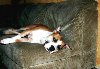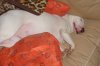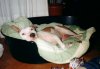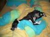 Kira in ihrem extra gekauften Allergiebettzeug im eigenen Körbchen,