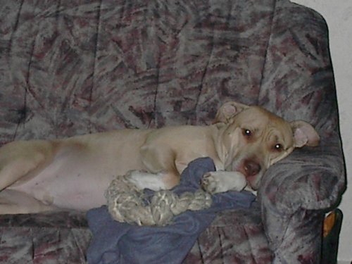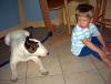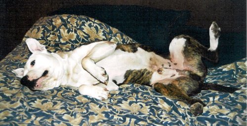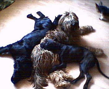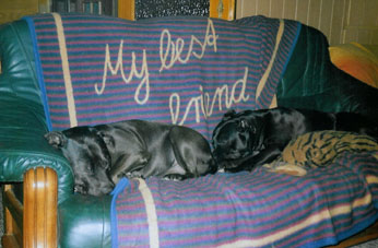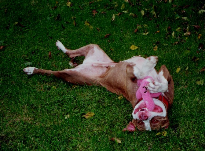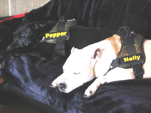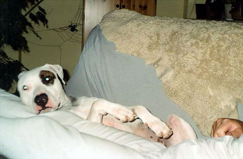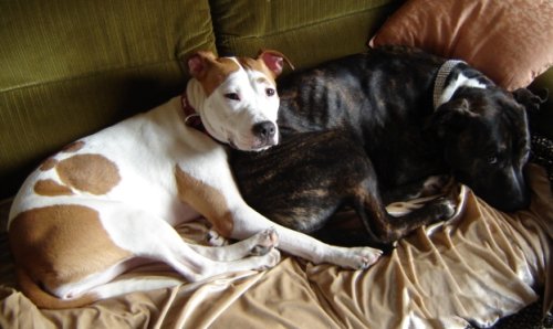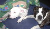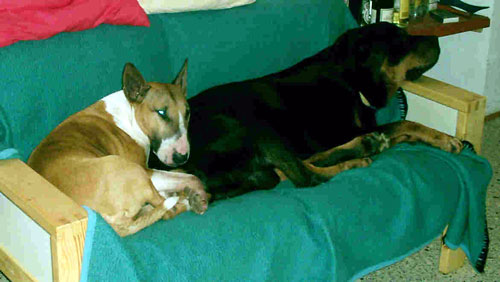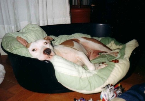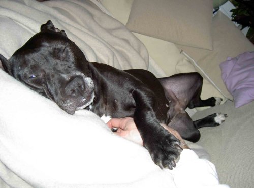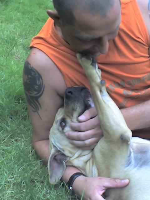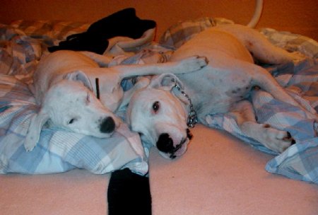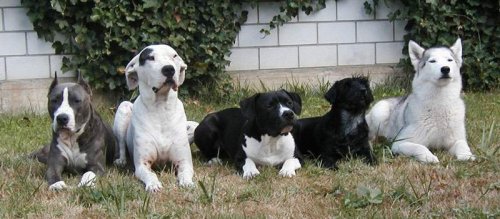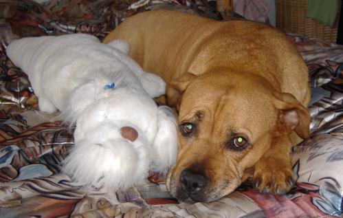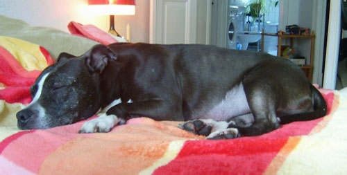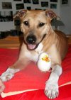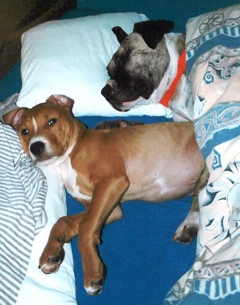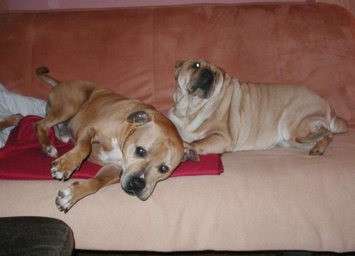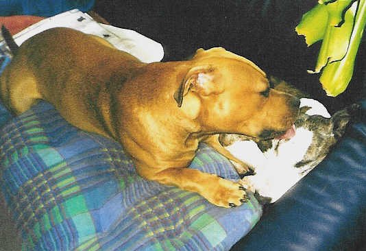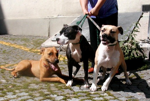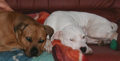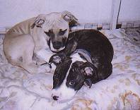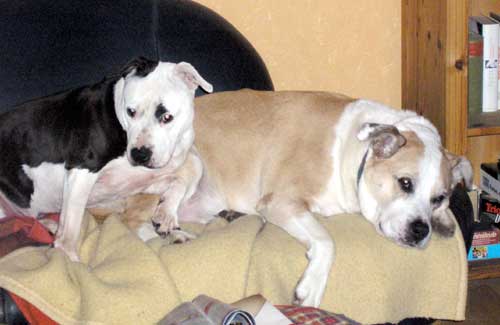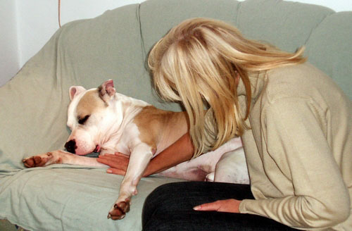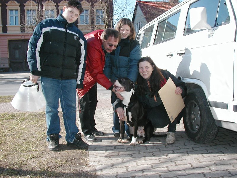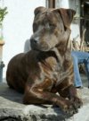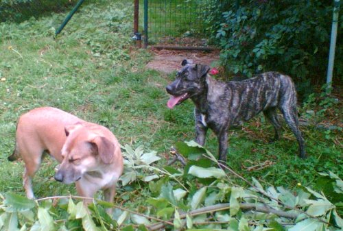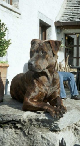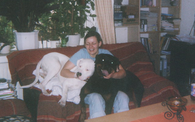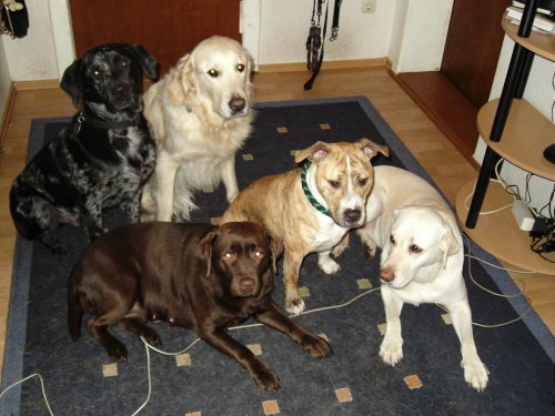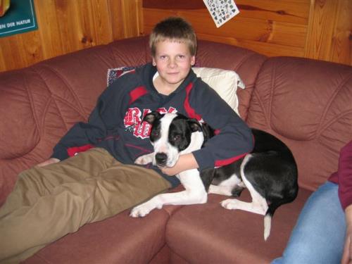 Ich habe ein wiederholtes mal die Ehre, Menschen kennen lernen zu dürfen, welche mehr als ein grosses Herz haben, eine menschliche Seele, die ihren Namen verdient. Lange hat ihr Warten auf Glück gedauert. Eigentlich fing ihr Glück damit an, dass wir sie am 28.02.05 aus der Bremer Stadtamtunterbringung der Listenhunde mit zu uns nahmen. Sie musste allerdings bei uns wegen vorheriger "Fehlbehandlung" noch zweimal operiert werden. Dann musste Henna viel Neues kennen lernen, denn sie war damals dort 2000 als Junghund hingekommen. Sie lernte schnell und spielte gerne mit den Hundejungs. Nun hat sie ihr grosses Glück in Sachsen-Anhalt gefunden, ihr erstes eigenes Zuhause und das mit 8 Jahren! Nie hat sie eine Familie ihr eigen nennen können. Wir freuen uns, dass Henna sich so komplikationslos eingelebt hat und vor allem, dass es Menschen gibt, welche trotz der langen Zeit wo Henna ohne Familie war, ihr und uns, volles Vertrauen entgegen gebracht haben. Es hat sich für alle gelohnt. Auch Henna ist kein gesunder Hund: sie hat schwere HD und beginnende Coxarthrose! Wie sie immer wieder lesen können: auch diese Hunde haben ihre Chance verdient und alle Menschen, welche sie ihnen geben, haben es nicht bereut! Nelly (rechts im Bild) wurde von uns im Sommer 2002 vermittelt, ein Traumhund, welchen sich viele Hundehalter gewünscht hätten. Leider blieb sie bei der Scheidung auf der Strecke und war für das Frauchen im letztem halben Jahr nur noch lästig! Wie man sich in Menschen täuschen kann. Im Sommer 2007 landete sie wieder bei uns, leider nicht in einem besonders guten Zustand. Schnell erholte sie sich und hatte das Glück bei einer lieben Pflegestelle unterzukommen. Nun hat sie ihre Menschen gefunden. In NRW darf sie jetzt mit ihrem Hundefreund Pepper Garten und Bett teilen. Frauchen und Herrchen haben einen Traumhund gefunden, verträglich mit Gott und der Welt. Sie geniest, dass was ihr gebührt: Liebe und Zuneigung und Hundeeltern die voller Stolz sind, denn sie ist das, was sie ist: ein Traumhund! Der kleine Mann (rechts im Bild) ist inzwischen gut gewachsen und darf sich jetzt mit einem Hundekumpel im Westen Deutschlands amüsieren.