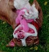 Nun lebt das Julchen (links im Bild) schon lange bei seinen Pflegeeltern, zu lange... Man möchte sie dann doch nicht mehr hergeben, was wir gut verstehen können, erstmal ist sie eine entzückende Maus (manchmal zwar etwas chaotisch) und dann gewöhnt man sich ja schliesslich auch an so ein Tierchen...