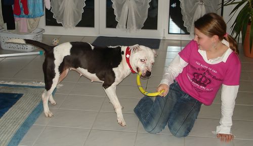 Auch unsere hübsche "Blaue" hat ein wundervolles Zuhause gefunden. Nicht nur Frauchen und Herrchen stehen ihr für ihr weiteres Leben zur Seite, sondern auch ein hübscher Rottweiler als Ehemann. In Niedersachsen hat sie nun viel Spass, vor allem am Deich tobt es sich fabelhaft. Ihre Sturheit hat sich schon lange in Aufmerksamkeit und Lernwilligkeit gewandelt. Alle drei haben viel Freude an dem Familienzuwachs.